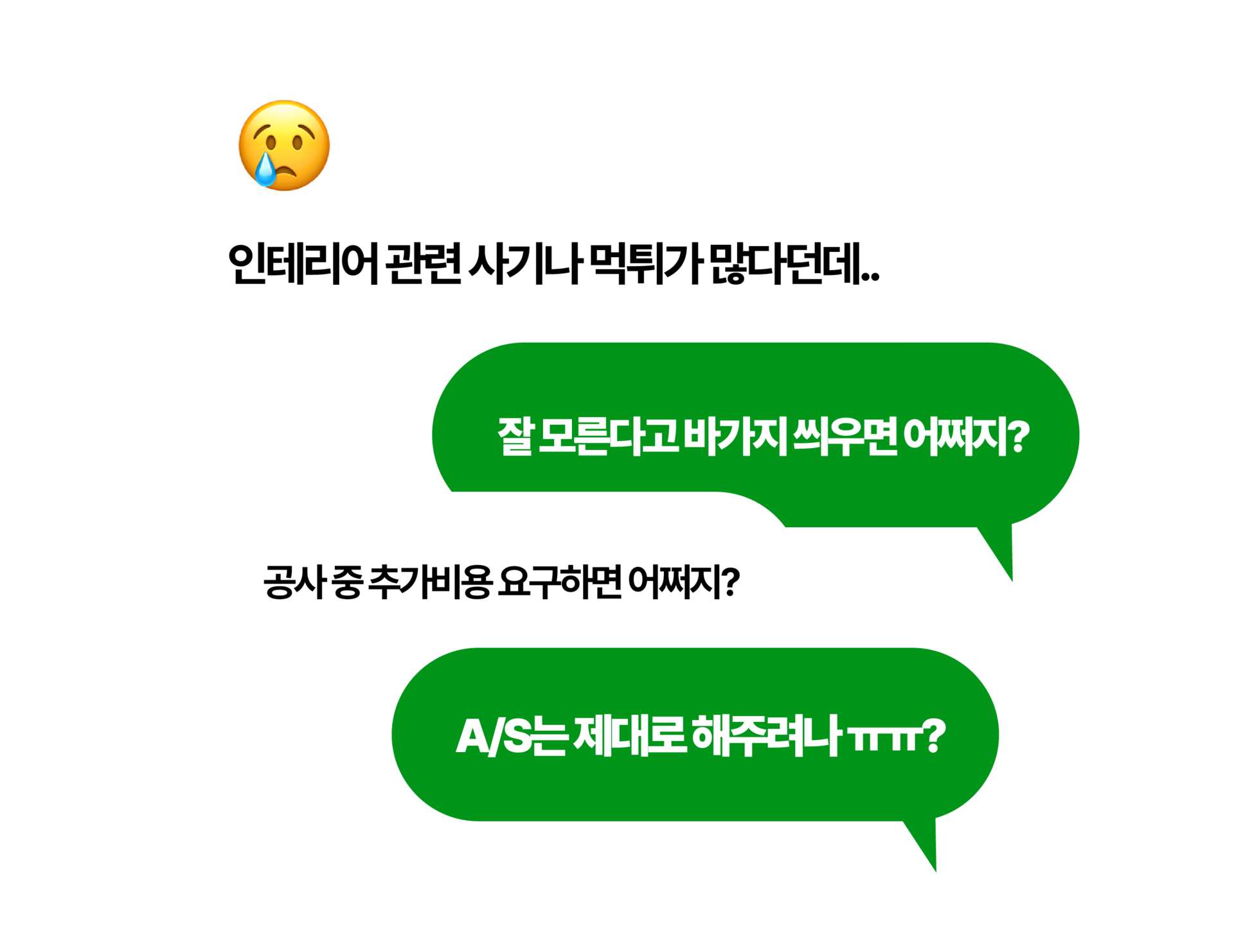 인테리어 과정에서 어디에 얼마나 돈이 들어갔는지 빠짐없이 확인하실 수 있도록 A/S 사항까지 기재된 양심적인 세부 견적서를 제공합니다.
